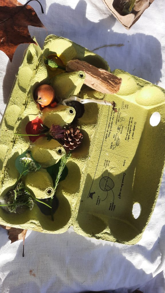 Ainsi, les interventions prennent souvent la forme d’un conte interactif et sensoriel suivi de manipulations, ou de fabrications à base d’éléments naturels collectés par les enfants.